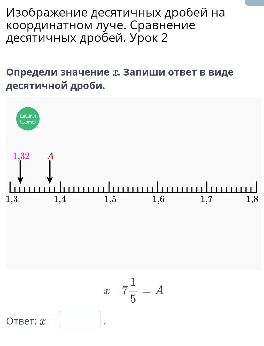 Определи значение x. Запиши ответ в виде десятичной дроби.