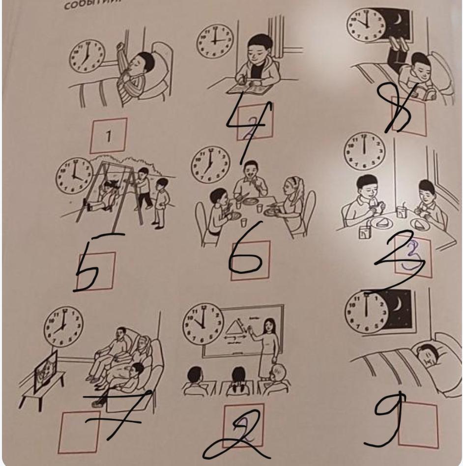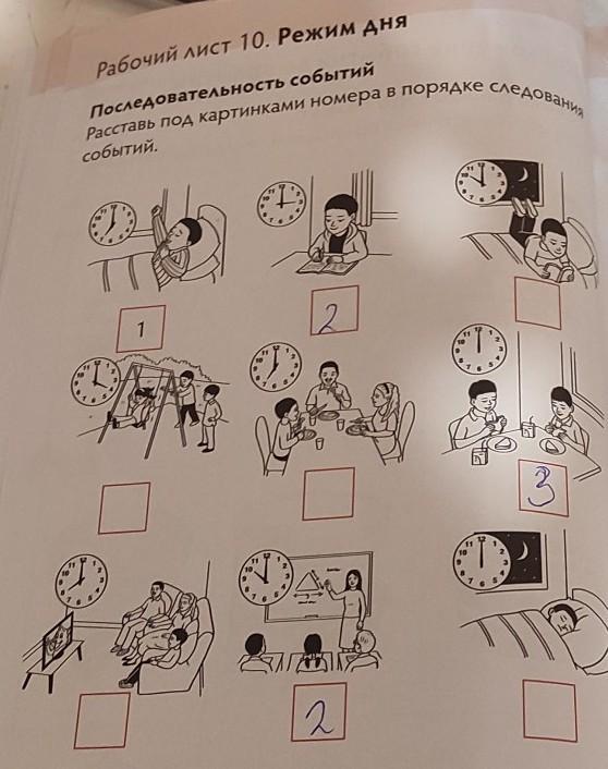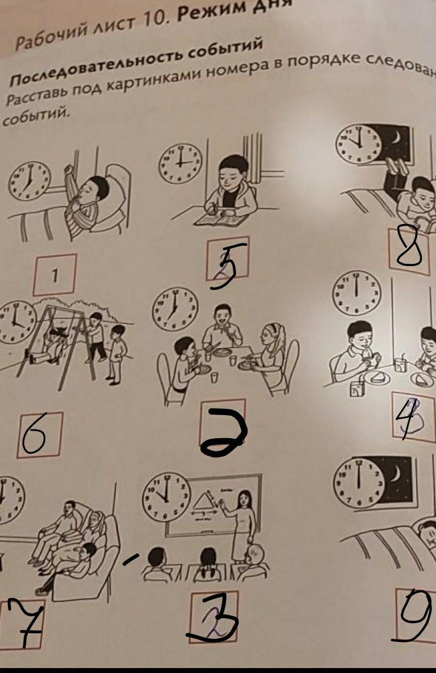 режим дня.последовательность событий. Расставь под картинками номера в порядке следования событий.