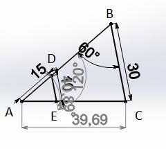 АС^2=30^2+45^2-2*30*45cos60°=39.7^2