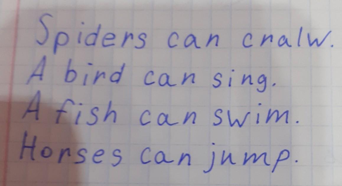 Spiders, A bird, A fish, Horsee