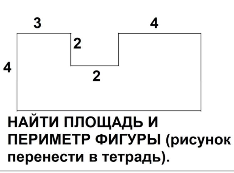 Сначала посчитаем периметр и площади большого прямоугольника и маленького квадрата
