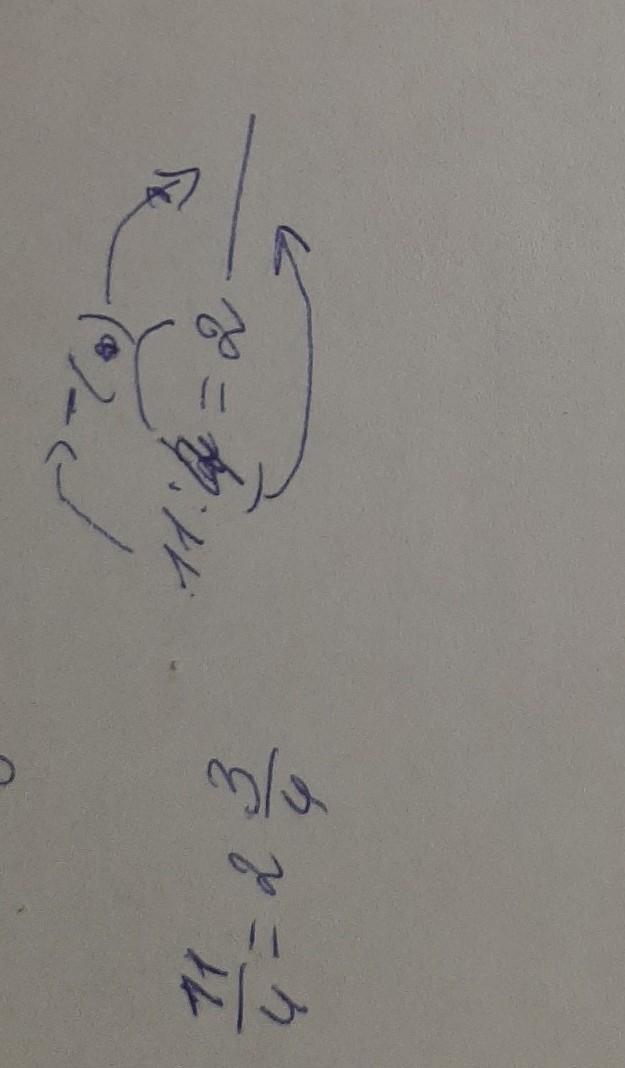 11 разделить на 4, записать. целую часть. это будет 2 . потом от 11 нужно отнять произведение 2*4, и записать в числитель. в знаменателе будет 4.