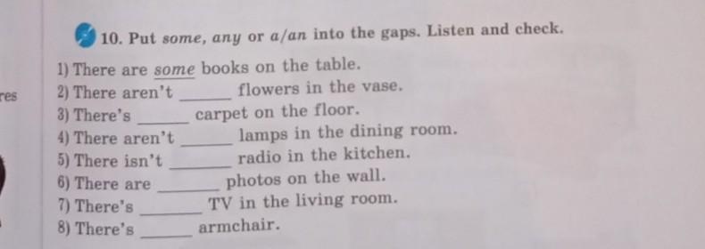 Ответ: 2 any 3 a 4 any 5 any 6 some 7 a 8 an