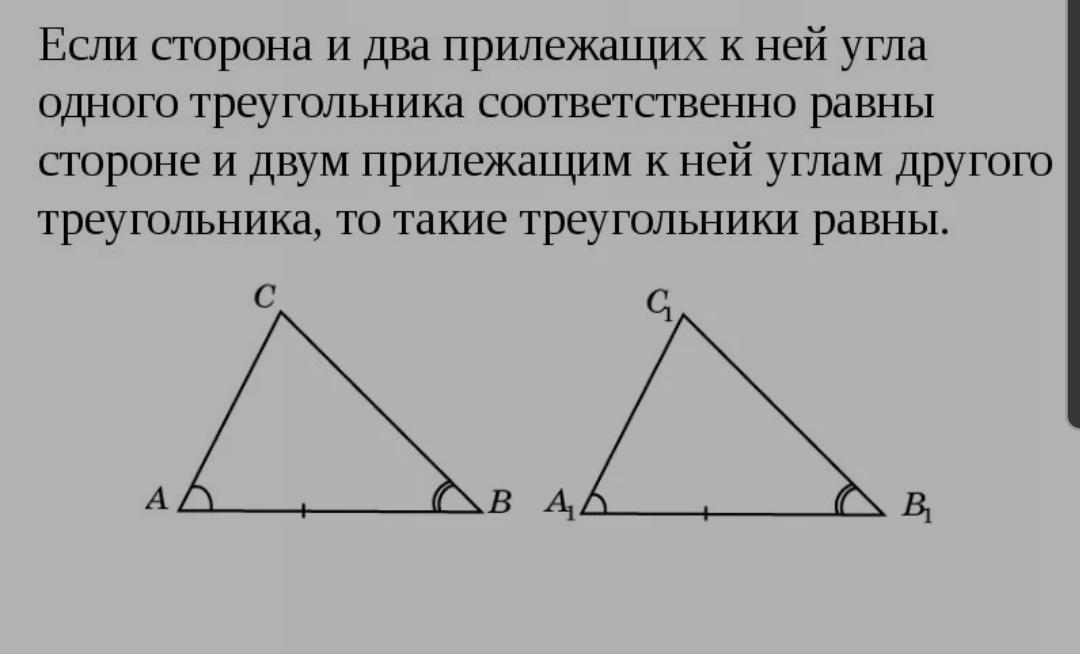 Второй, если 2 угла и сторона между ними равны то и треуг. Равны, смотри, у одного треугольника сторона s = 4см,углы a=19градусам и k=89 градусам, а у другого треуг сторона d = 4см , а углы равны, то треуг равны. На фото 2 признак