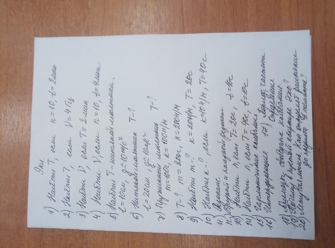 1)дано:н=10,т=2мин Т=? нужно n поделить на t