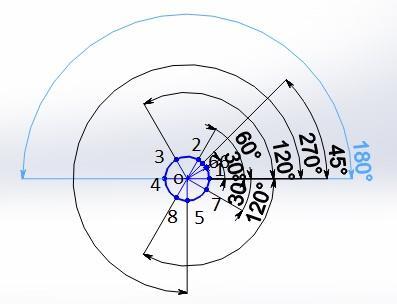 Постройте точки, в которые переходит заданная точка A при повороте вокруг заданной точки O на углы 30°,60°,120°,180°,270°,405°,-30°,-120°.
