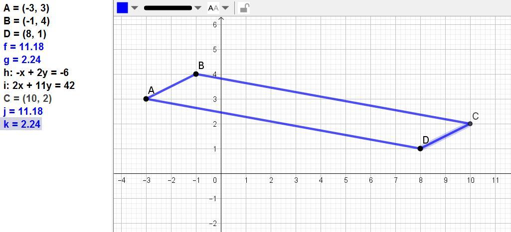 Найдите координаты вершины C параллелограмма ABCD если A(-3;3) B(-1;4) D(8;1)