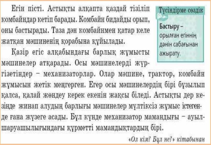 Ответ: Зат есім:егін,комбайндар,комбайн,егіс,