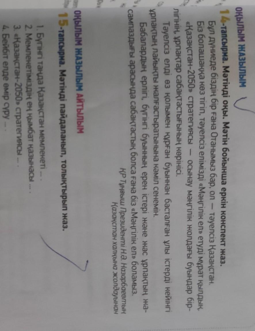 15-тапсырма. Мәтінді пайдаланып, толықтырып жаз.
