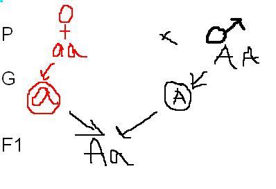 У коровы и быка по 1 типу гамет. Гибрид получится с генотипом Аа черной окраски