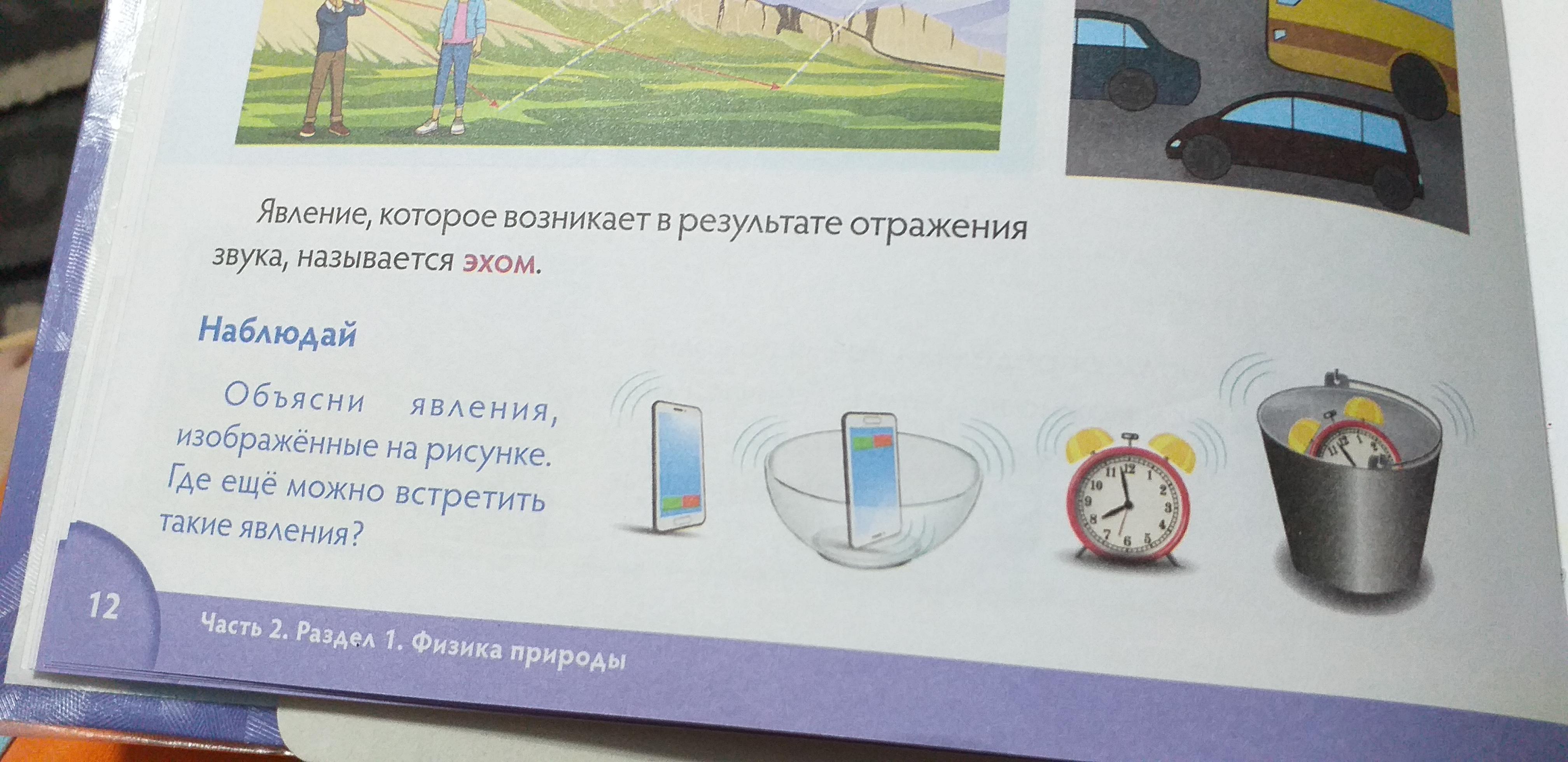 когда мы ложим в ведро будильник или телефон, то звук который исходит из будильника "отскакивает" от стенок ведра или тарелки