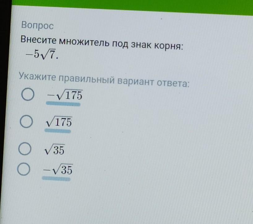 -5 корень7= - корень(5^2×7)= - корень(25×7)=