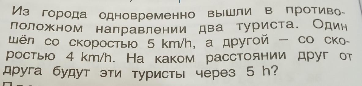 1)4+5=9 2) 9×5=45 ответ: на 45 км от друг друга