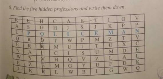8.Find the five hidden professions and write them down.