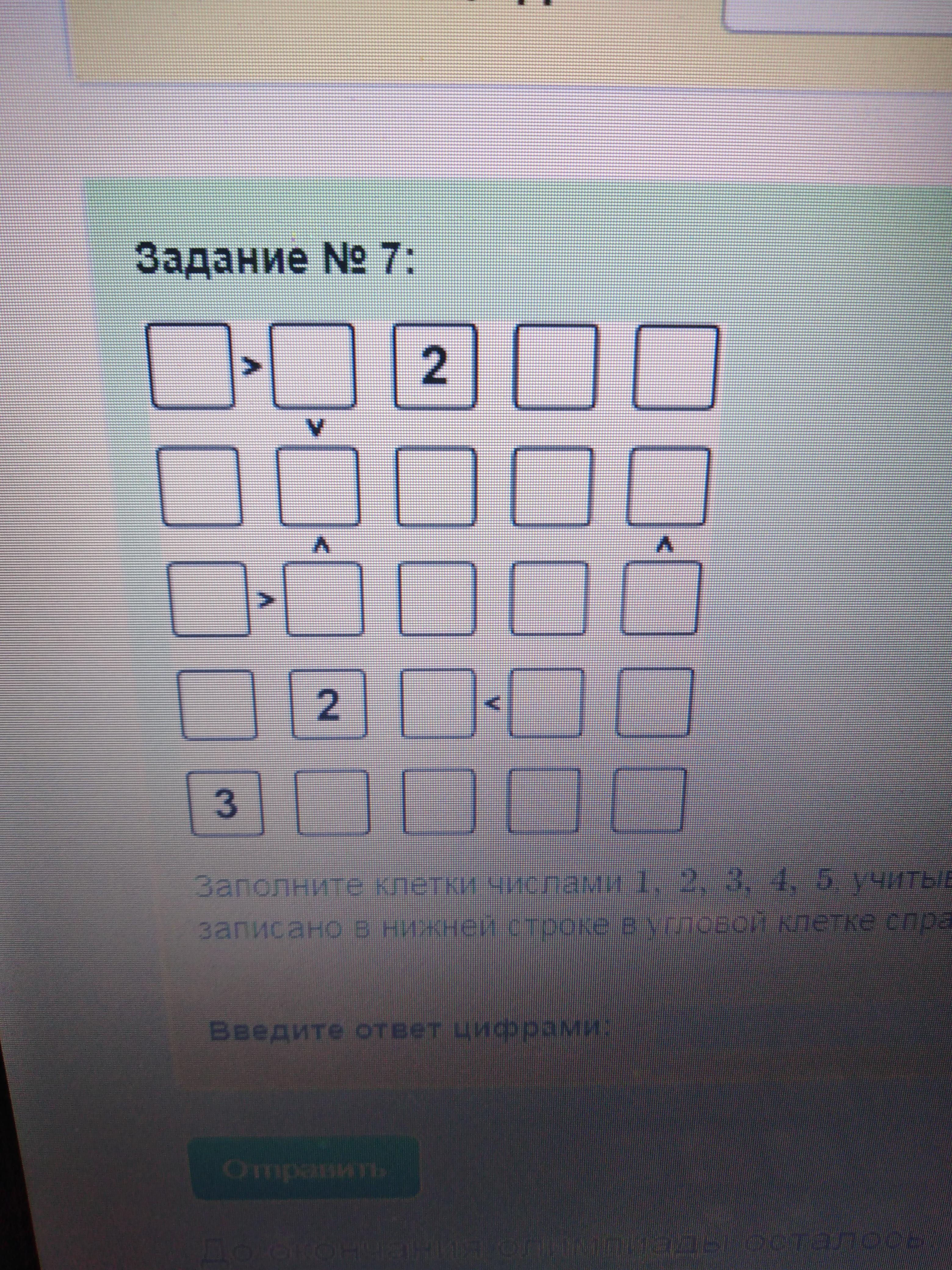 Заполните клетки числами 1,2 3,4,5, учитывая знаки неравенство так, чтобы в каждой строке и в каждом столбце каждое число было записано один раз. Какое число будет записано в нижней строке в угловой клетке справа?
