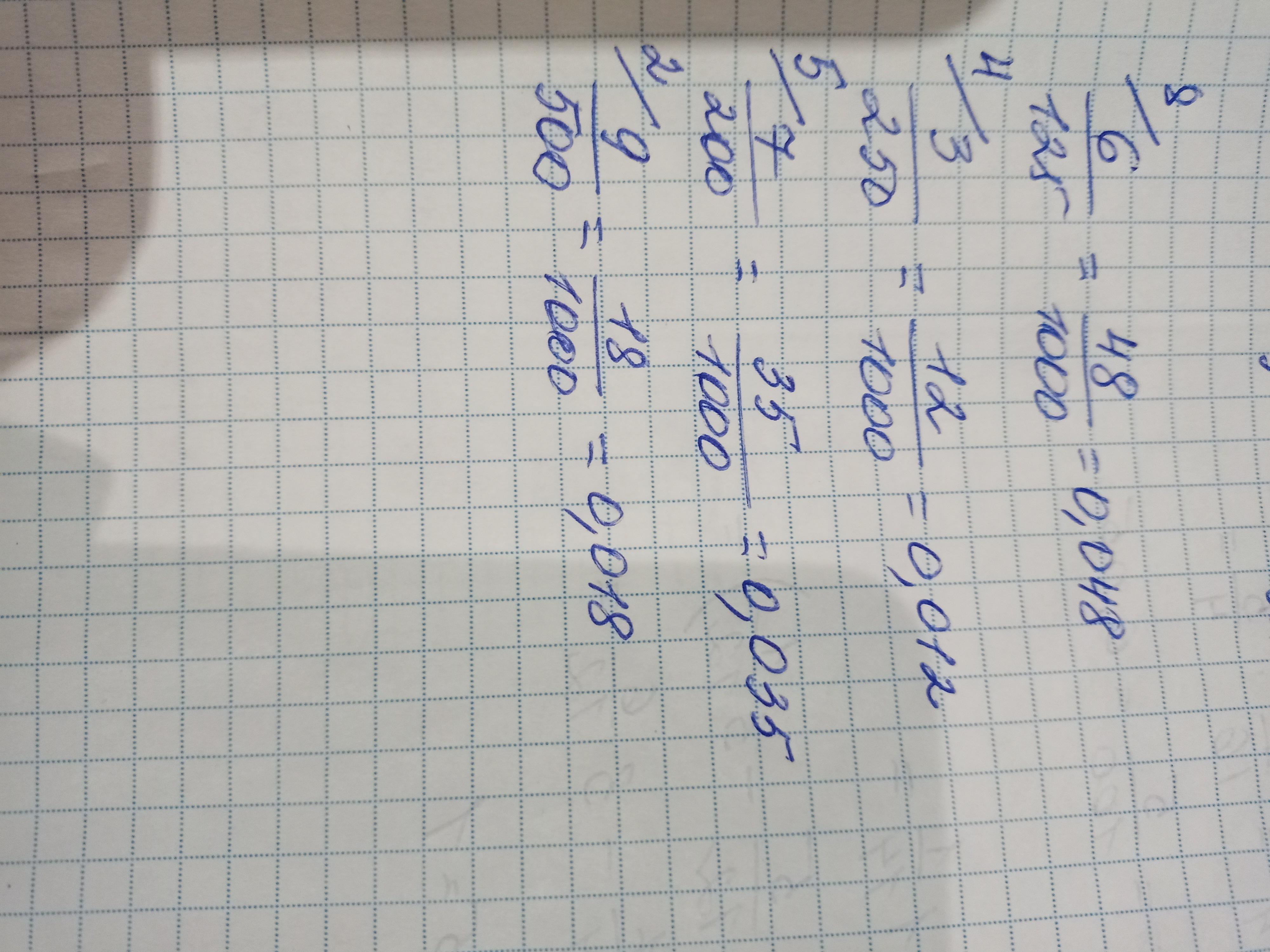 Приведите к новому знаменателю Представьте в виде десятичной дроби 6/125;3/250;7/200;9/500 к знаменателю 1000