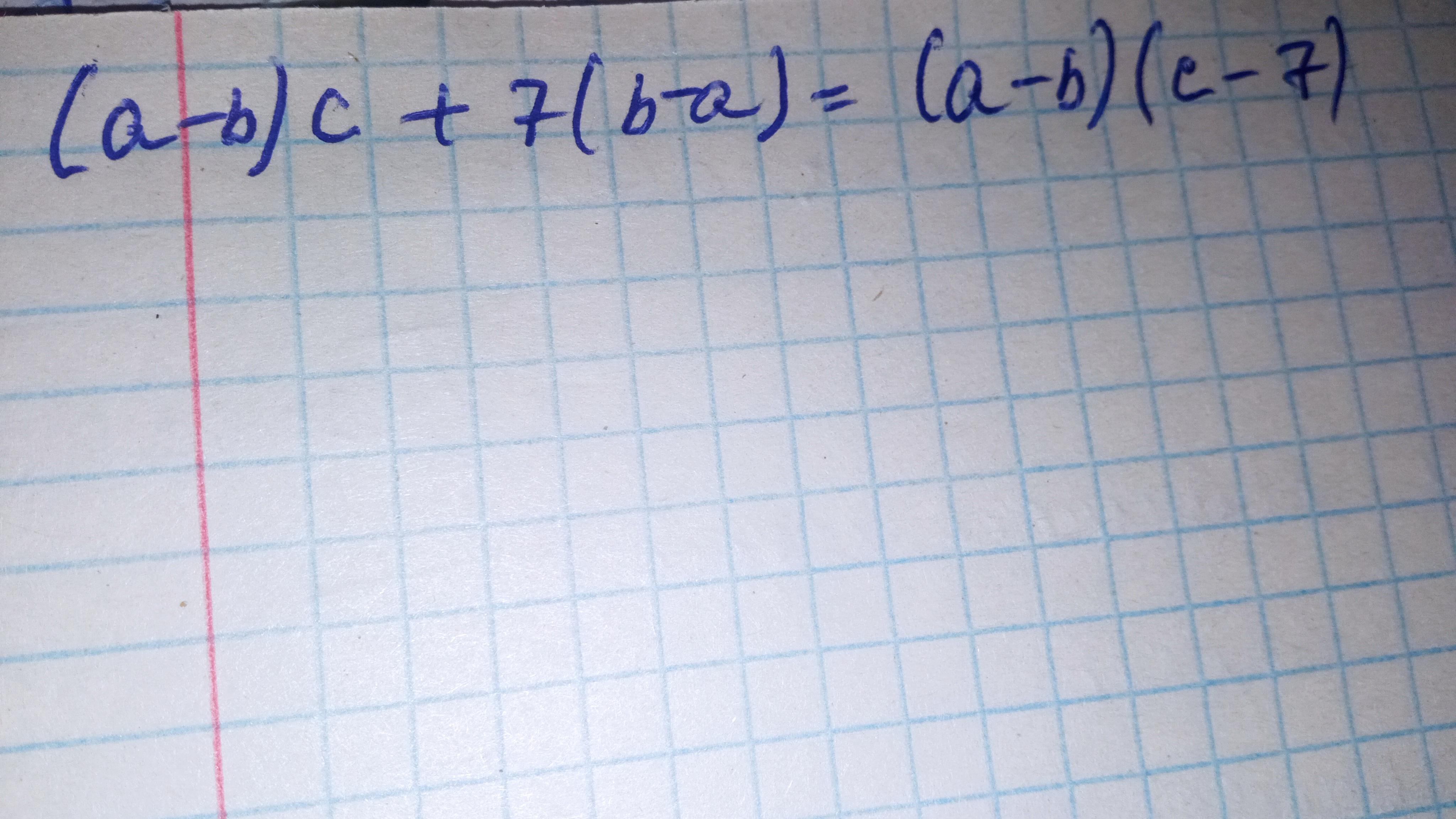 (a - b)c + 7(b - a) = с * (a - b) + 7 * (- (a - b)) = c * (a - b) - 7(a - b) = (a - b)(c - 7)