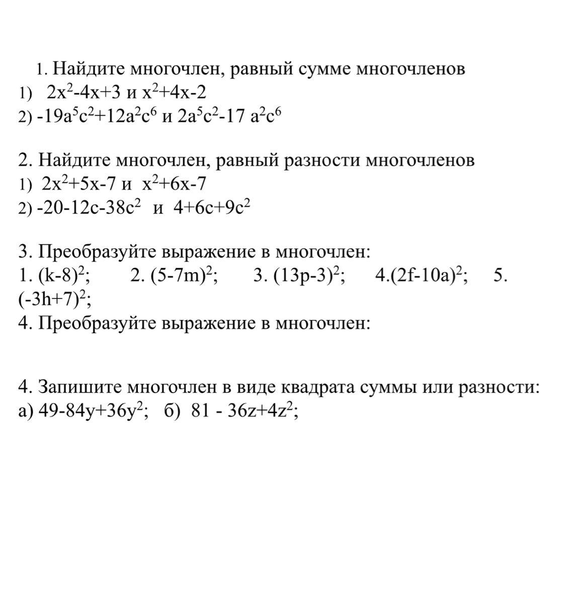 Найдите сумму и разность многочленов А и В. Запишите результат как многочлен стандартного вида.