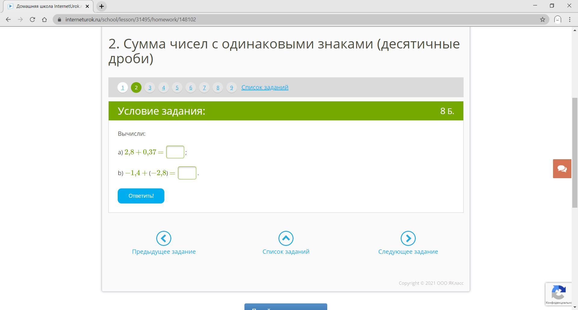 б) -1,4 + (-2,8) = -1,4 - 2,8 = -4,2