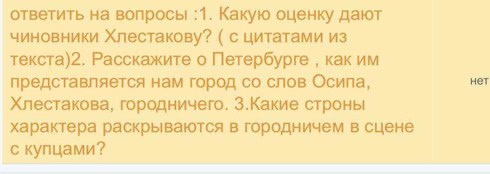 ответить на вопросы :1. Какую оценку дают чиновники Хлестакову? ( с цитатами из текста)2. Расскажите о Петербурге , как им представляется нам город со слов Осипа, Хлестакова, городничего. 3. Какие строны характера раскрываются в городничем в сцене с купцами?