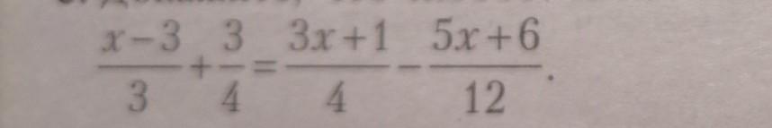 (х-3)/3 + 3/4 = (3х+1)/4 - (5х+6)/12