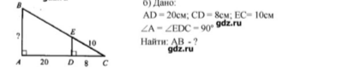 Находим ED по теореме Пифагора, получаем 6. Так как треугольники CED и CBA тождественны, то AB относится к ED так же как AC к DC, то есть AB/6=28/8, решаем и получаем АВ= 6*28/8=168/8=21