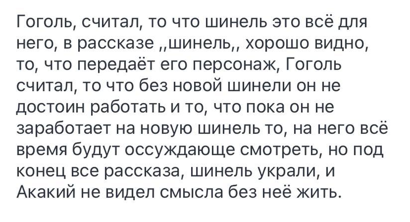 Действительно, счастье Акакия длилось только один день. “На другой день он явился весь бледный и в старом капоте своем, который сделался еще плачевнее”. Он обращается за помощью в полицию, но там с ним даже не хотели разговаривать. Тогда Акакий Акакиевич идет к “значительному лицу”, но тот выгоняет его. Эти неприятности настолько сильно подействовали на главного героя повести, что он не смог пережить их. Он заболел и вскоре умер. Повесть “Шинель”, несмотря на свою реалистичность, заканчивается фантастически. После смерти Акакия Акакиевича на улицах Петербурга стал появляться призрак, который снимал шинели с прохожих. Одни видели в нем схожесть с Башмачкиным, другие не замечали ничего общего у грабителя с робким чиновником. Однажды ночью призрак встретил “значительное лицо” и сорвал с него шинель, напугав чиновника до того, что тот “даже стал опасаться насчет какого-нибудь болезненного припадка”. После этого случая “значительное лицо” стало лучше относиться к людям. Такой конец повести подчеркивает авторский замысел. Гоголь сочувствует судьбе “маленького человека”. Он призывает нас быть внимательными друг к другу, и как бы предупреждает, что человеку придется отвечать в будущем за нанесенные ближнему обиды. Недаром один из сослуживцев Башмачкина услышал за его словами: “Оставьте меня, зачем вы меня обижаете?”, “Я брат твой”.