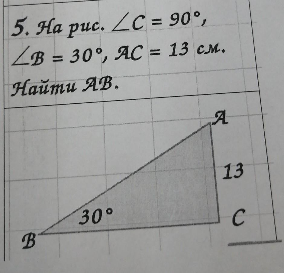 катет, лежащий против угла 30° равен половине гипотенузы.