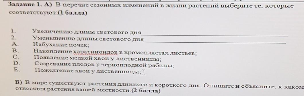 В мире существуют растения длинного и короткого дня. Опишите и объясните,к какому типу относятся растения вашей местности .Сделать нужно 1.А) и В). Пожалуйста срочно нужно!!!
