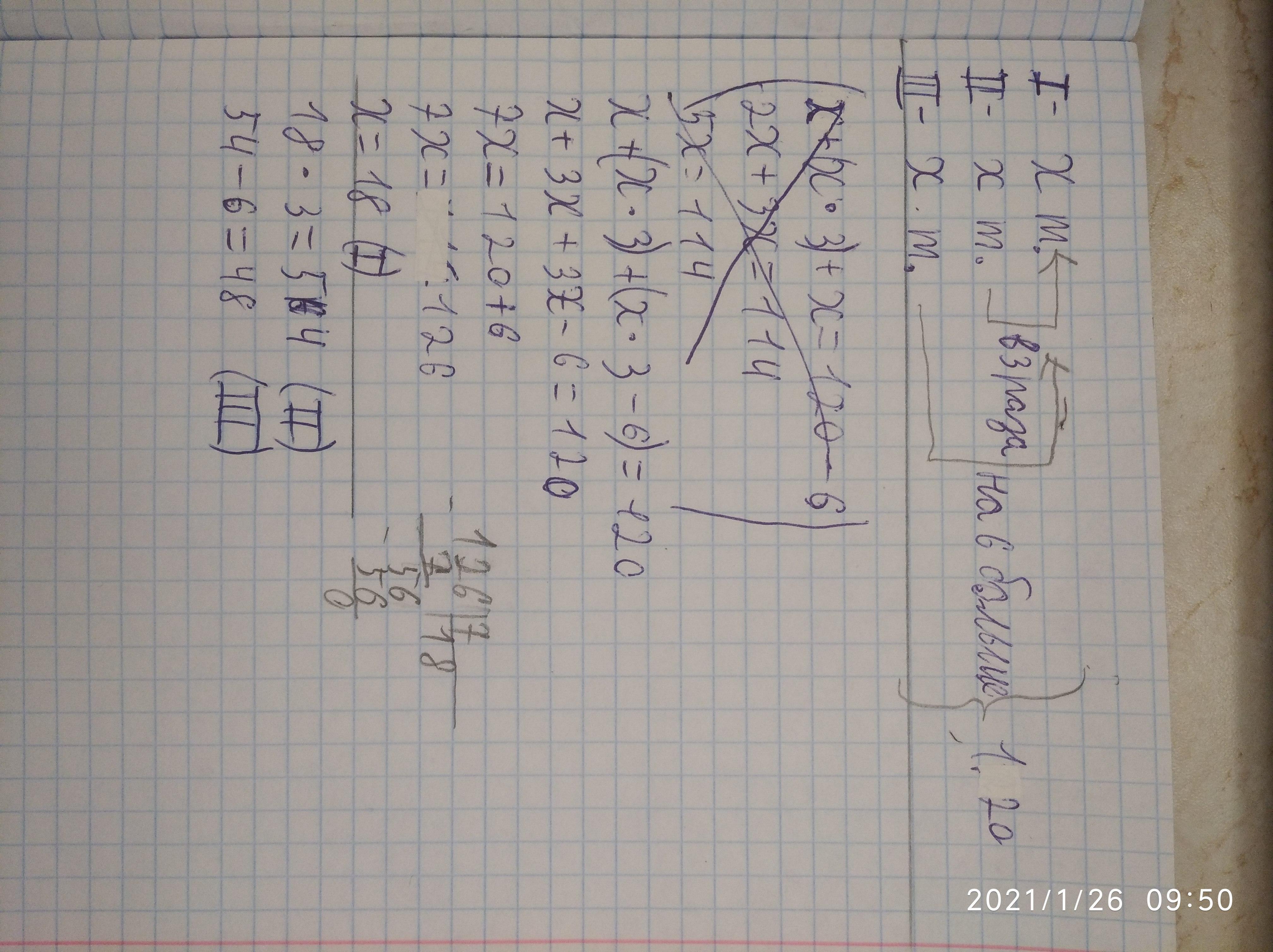 в столовой на трех стеллажах стояло 120 тарелок причем на первом стеллаже было в 3 раза больше тарелок,чем на втором и на 6 больше,чем на третьем сколько тарелок стояло на каждом стеллаже