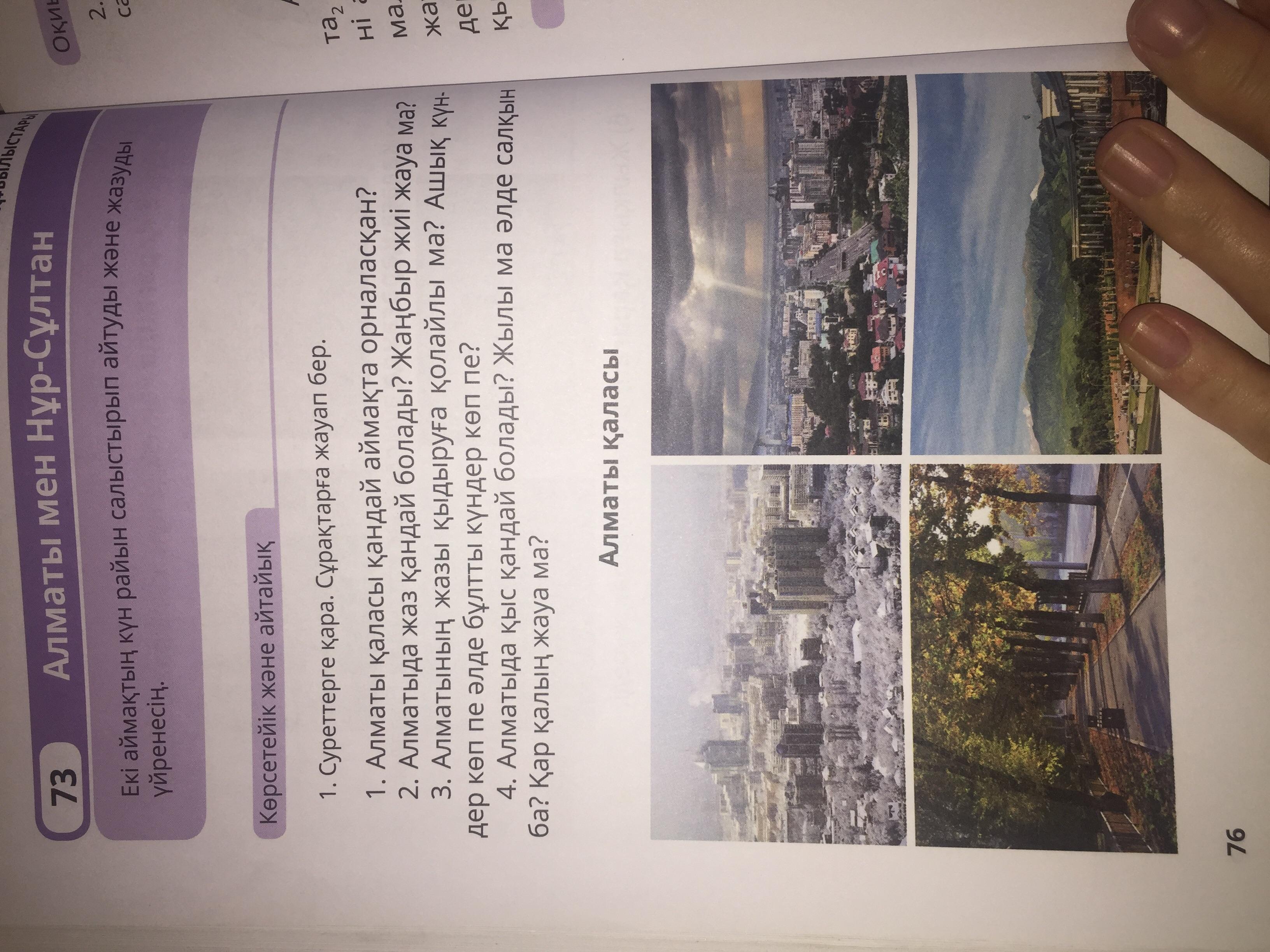 2)Алматы қаласы тауға жақын болғандықтан жазы кейде суық кейде жылы.Жаңбыр көбнесе көктемде жауады.Жазда да кейде жауады.