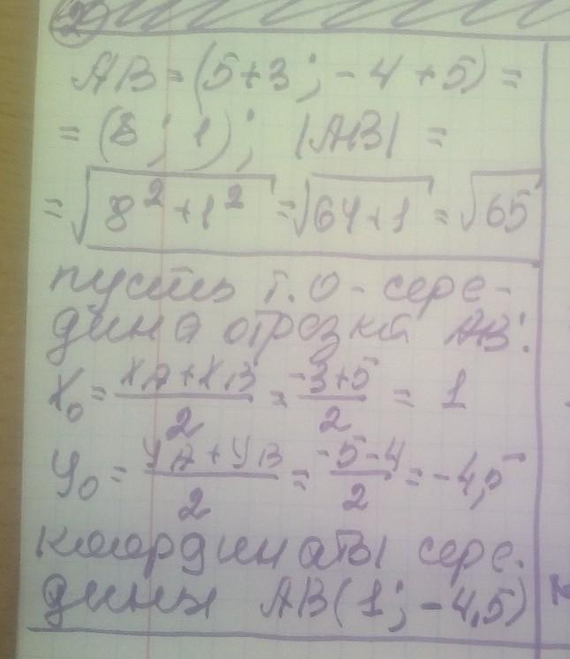 найдите длину отрезка АВ и координаты его середины, если А (-3;-5) и В (5;-4)