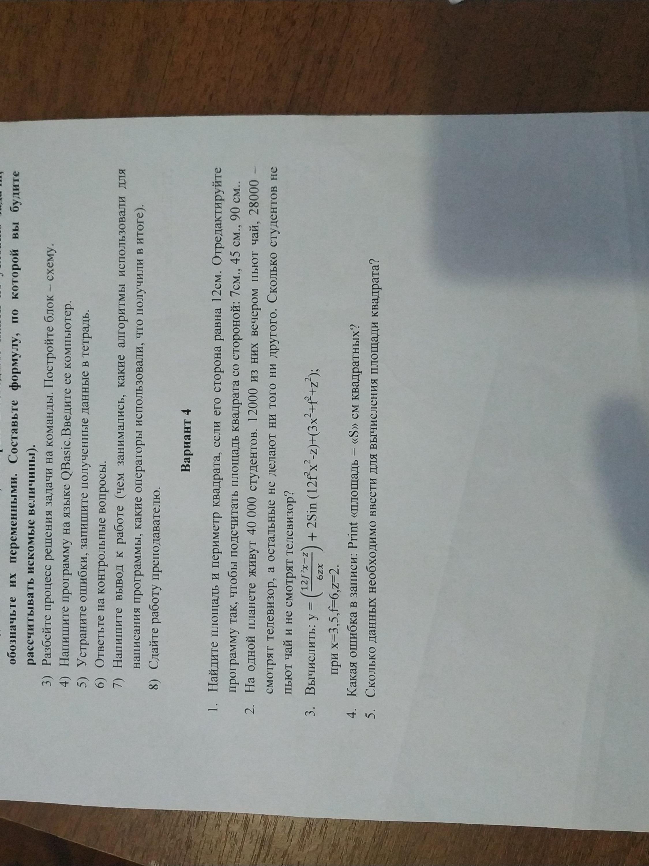 5)чтоб вычислить площадь нужно умножить А и В - (a=b)*2