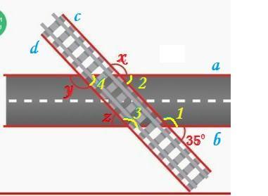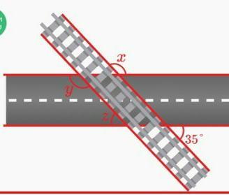 на рисунке шоссе и железная дорога пересекаются под углом 35° . Найдите x,y,z