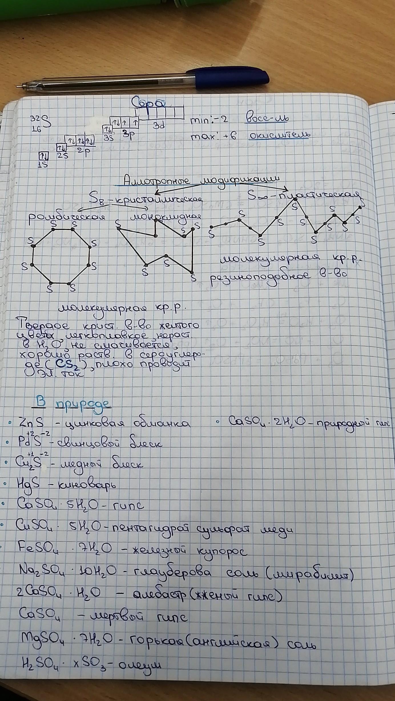 Положение в ПСХЭ: Сера находится в 3 периоде, VI группе, главной (А) подгруппе. Строение: Атомный номер серы 16, следовательно, заряд ядра атома серы равен +16, число электронов 16. Три электронных уровня (равно периоду), на внешнем уровне 6 электронов (равно номеру группы для главных подгрупп).