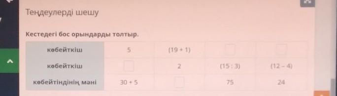 Кестедегі бос орындарды толтыр.