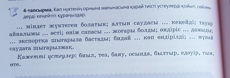 Былтыр міндет жүктелген болатын;алтын саудасы едәуір кеңейді;таулар айналымы тез өсті;өнім сапасы өте жоғары болды ;өндіріс баяу дамыды;Осында экспортқа шығарыла бастады;бидай тым көп өндірілді ;биыл мұнай саудаға шығарылмақ