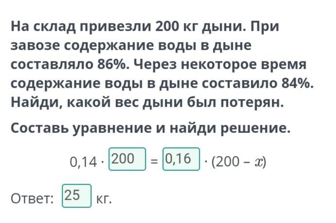 дыне составило 84%. Найди, какой вес дыни