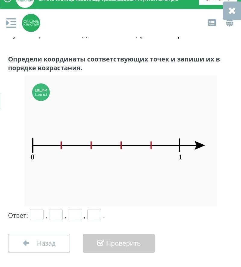 Определи координаты соответствующих точек и запиши их в порядке возрастания.