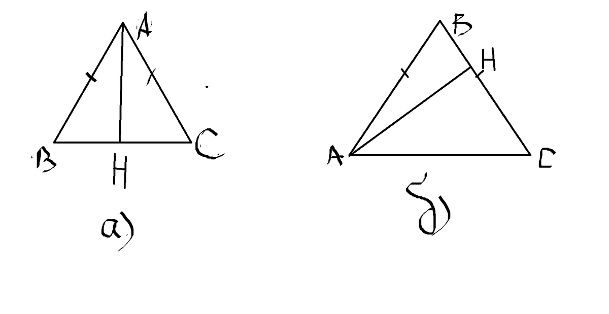начертите равнобедренный треугольник ABC с основанием AC и острым углом B. с помощью линейки проведите высоту из вершины угла A
