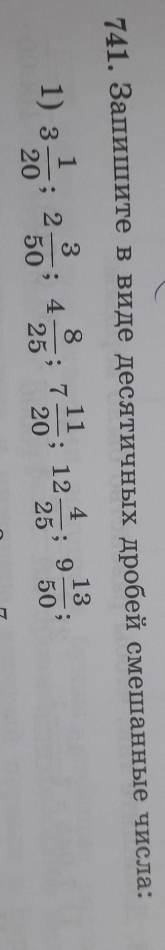 741. Запишите в виде десятичных дробей смешанные числа: