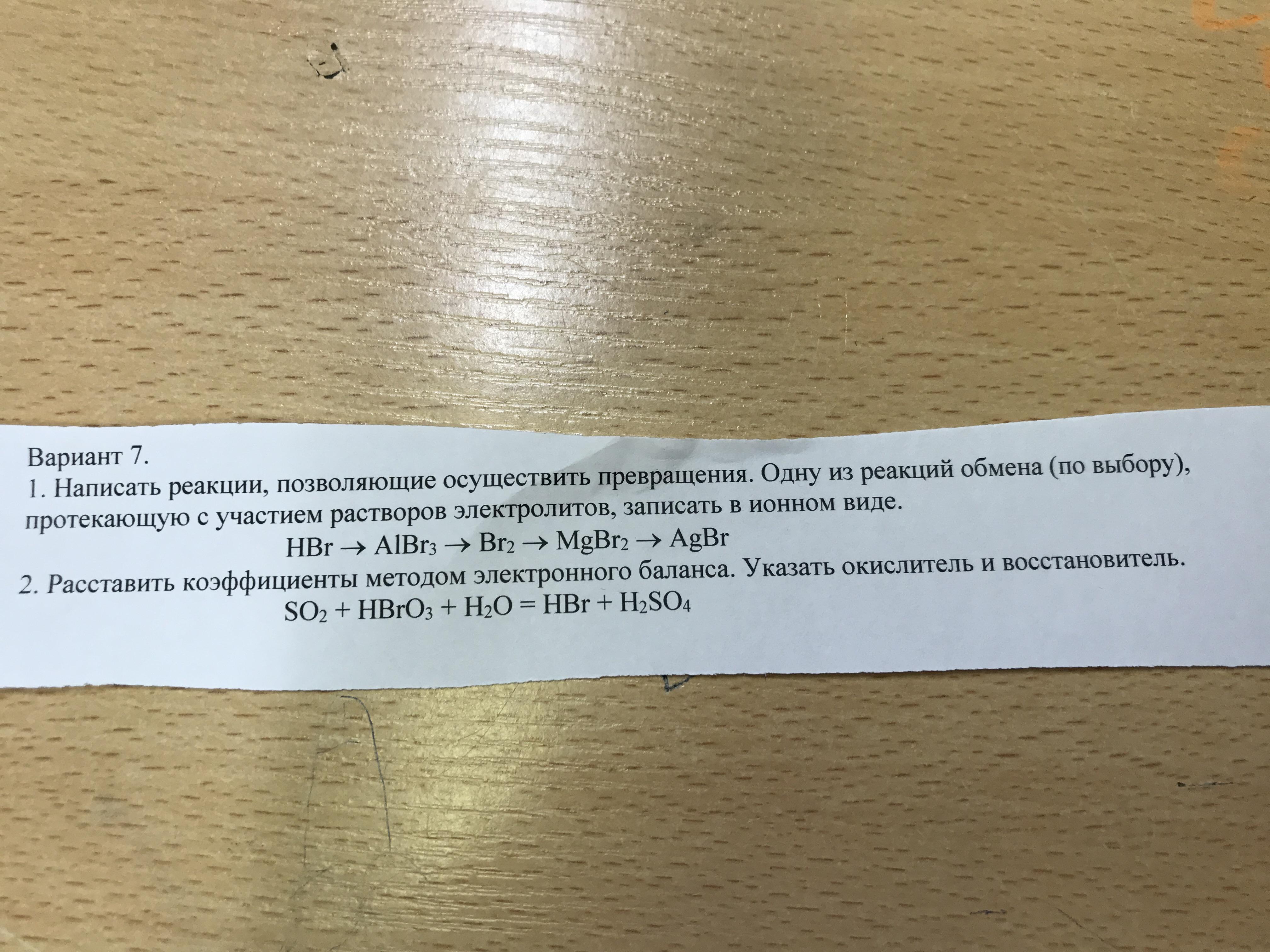 2) 3SO2 + HBrO3 + 3H2O = HBr + 3H2SO4