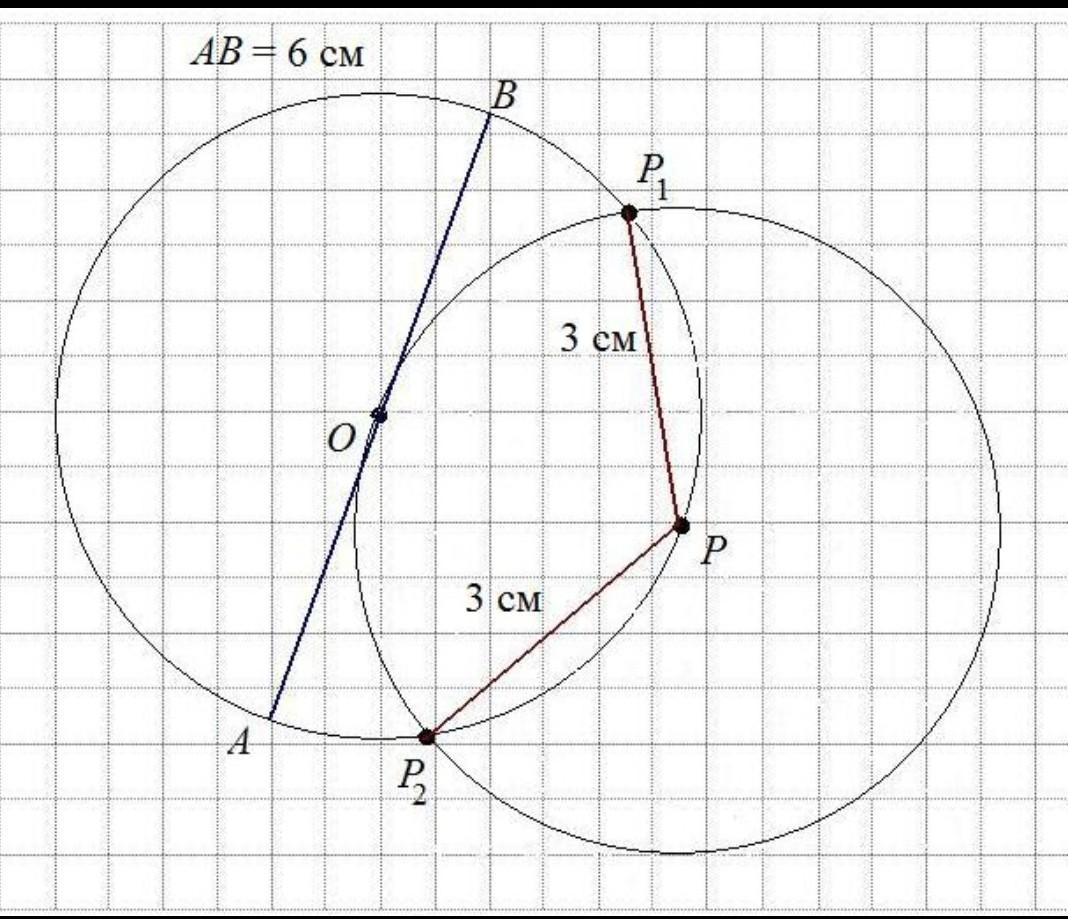 начертите окружность диаметр которой равен 6 сантиметров отметьте на окружности точку p найдите на окружности точку удаленную от точки п на 3 сантиметров