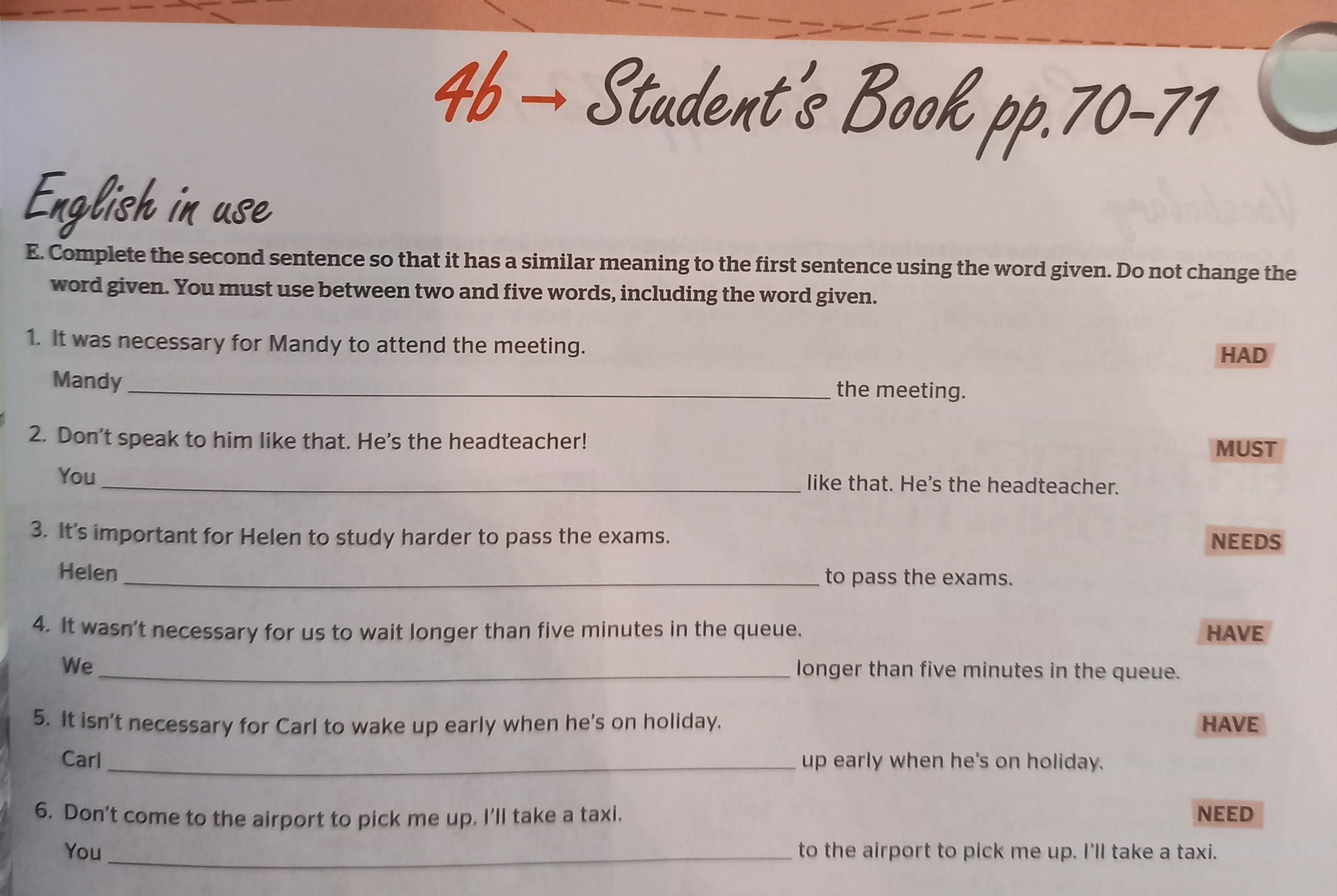 2. You must not speak to him like that. He’s the headteacher.