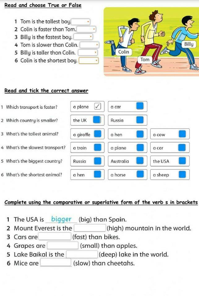 - 2. highest, 3. faster, 4. smaller, 5.deepest, 6. slower.