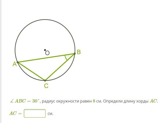 В ∆ АОС стороны АО=СО=R, угол при вершине О=60°, ⇒ углы при основании АС=(180°-2•60°)=60°. Против равных углов треугольника лежат равные стороны. АС=АО=ОС=8 см.