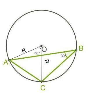 Объяснение: Угол АВС - вписанный и равен половине центрального угла, опирающегося на ту же дугу. Следовательно. ∠АОС=2∠АВС=60°.