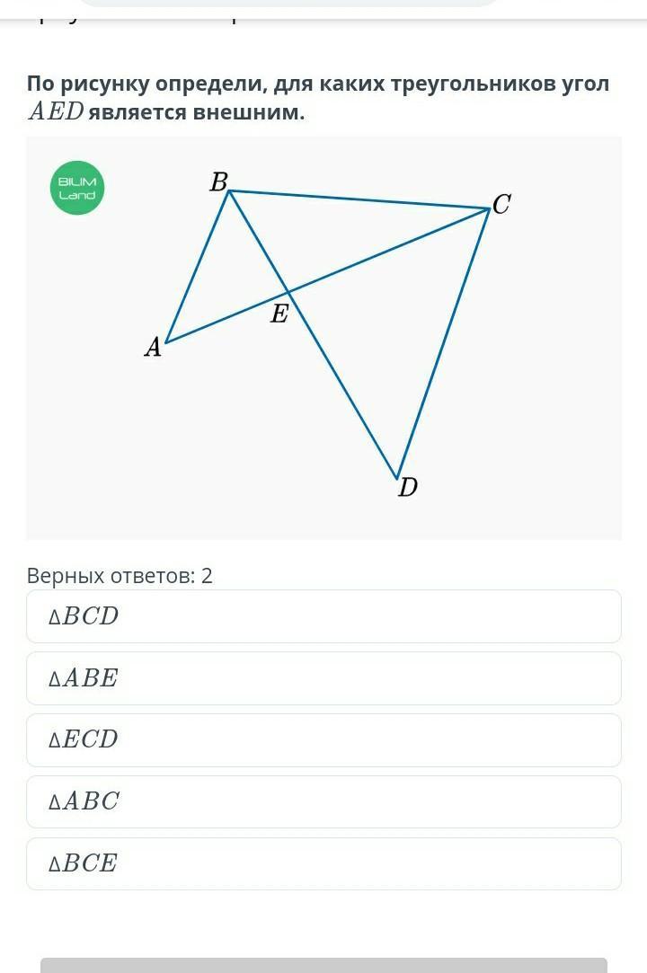 По рисунку определи, для каких треугольников угол AED является внешним.