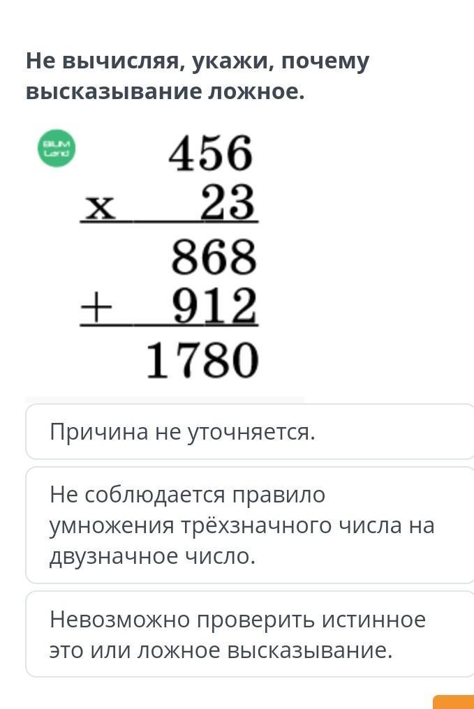 Не соблюдается правило умножения трёхзначного числа на двух значное