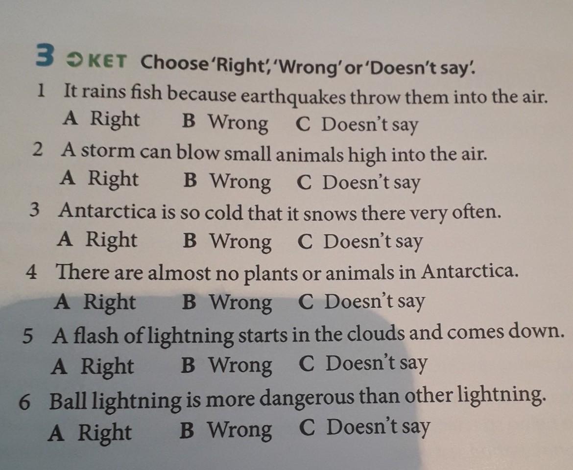 3 KET Choose Right','Wrong'or Doesn't say'.
